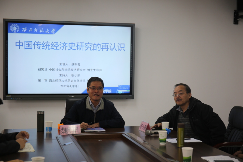 2019年4月3日上午,应kaiyun电子平台邀请,中国社会科学院经济研究所魏明孔研究员在教学7号楼312会议室做了题为《中国传统经济史研究再认识》的学术报告。报告由kaiyun电子平台胡小鹏教授主持,kaiyun电子平台何玉红院长、刘再聪副院长,尚季芳、郑峰、张连银、张继刚、杨芳等教师及博士、硕士研究生、本科生60余人聆听了此次报告。