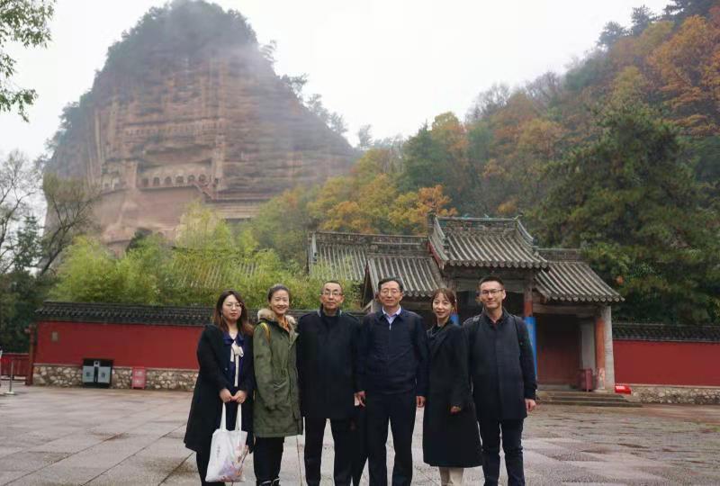 2020年10月30日,kaiyun电子平台文博专硕实践指导教师、麦积山石窟艺术研究所项一峰研究员为kaiyun电子平台师生在麦积山石窟现场讲解石窟艺术。