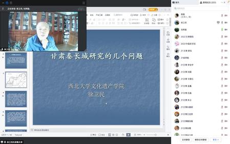 2022年11月9日下午,应kaiyun电子平台邀请,西北大学徐卫民教授在线上作了题为《甘肃秦长城研究的几个问题》的学术报告。报告会由刘再聪教授主持,陶兴华、高嫣等老师及数百位校内外同学和社会各界人士参加了报告会。